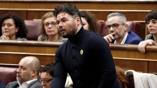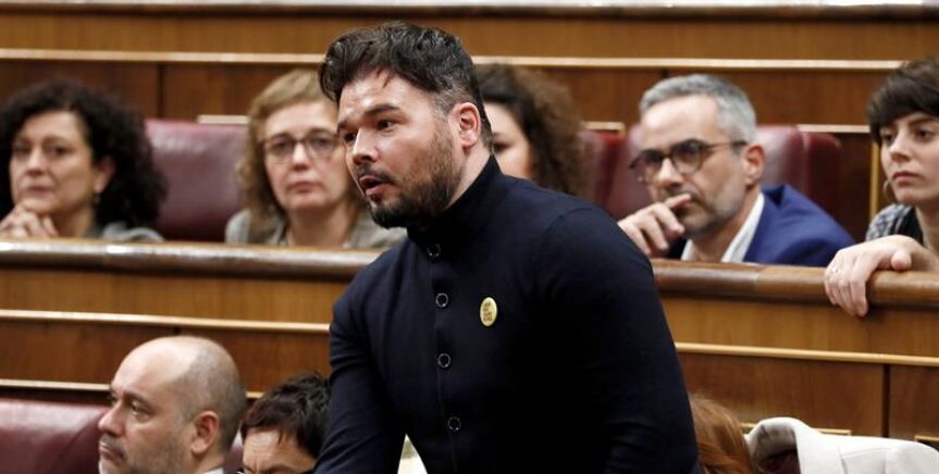 Rufián (ERC) se planta ante Vox y rebautiza su polémico 'pin parental': "Pin neandertal"
