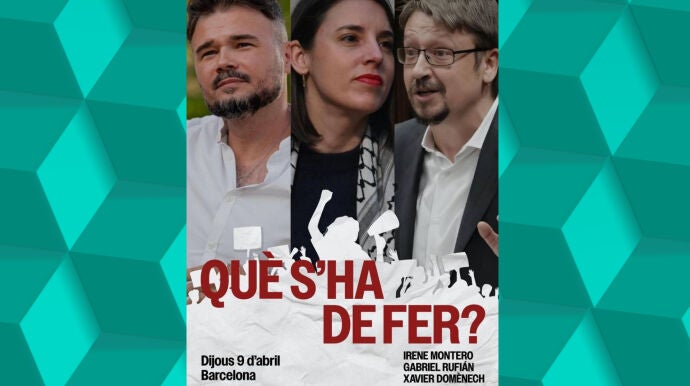 El evento con Irene Montero llevará el título 'Què s'ha de fer?' en catalán (¿Qué se debe hacer?, en castellano) y cada uno planteará sus ideas sobre el estado de la izquierda.