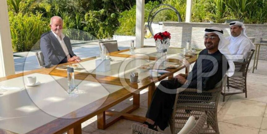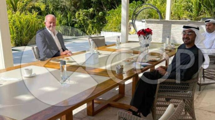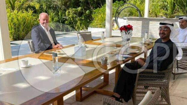 En la imagen que aparece sobre estas líneas, a la que ha tenido acceso la cadena 'COPE', el emérito aparece junto al príncipe heredero Sheikh Mohammed.