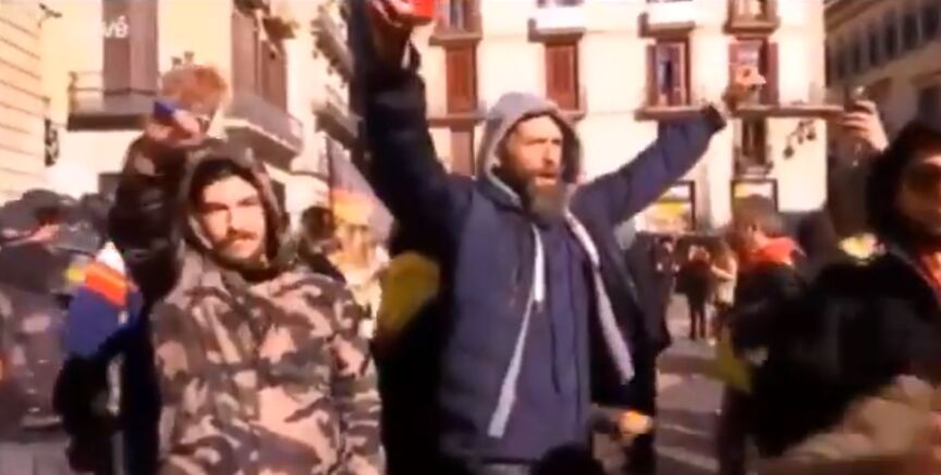 En la concentración, convocada por el partido de extrema derecha bajo el lema 'España Existe', se han visto saludos fascistas y se han vivido momentos de tensión con miembros de los CDR.