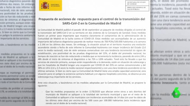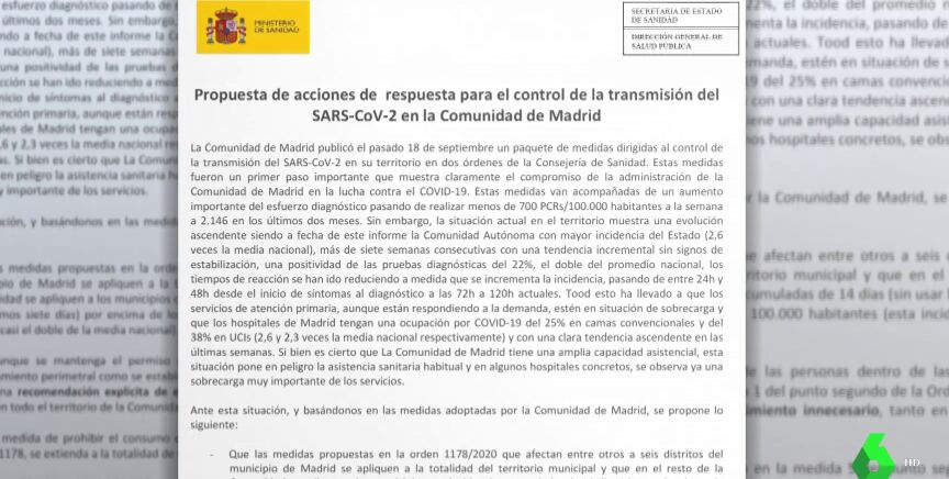 Desde el Gobierno aseguran haber entregado este jueves el documento que puedes ver en esta noticia. Posteriormente y una vez han salido a la luz los documentos, la Comunidad de Madrid ha reconocido a laSexta que el jueves.