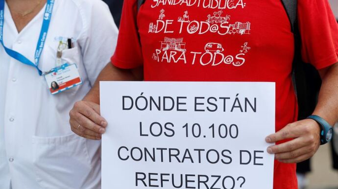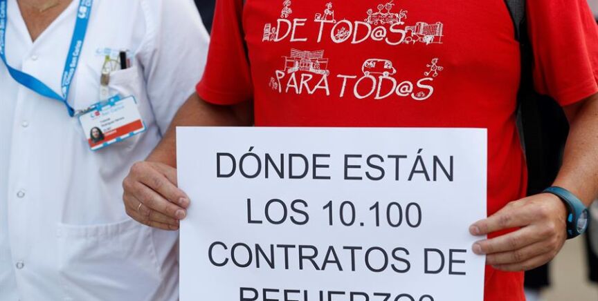 También los sindicatos se unen a la protesta y denuncian que el Gobierno regional ha "expulsado" a los profesionales de la sanidad. Desde Comisiones Obreras (CCOO) aseguran que "faltan cerca de 2.500 contratos de refuerzo sin renovar".