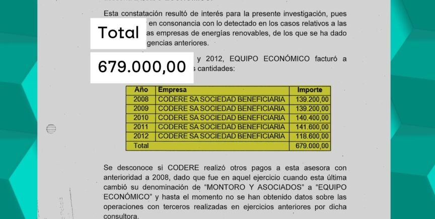 Además, el documento también recoge que, en 2009, la empresa Fundación Codere también habría abonado 11.850 euros a Equipo Económico y que todavía se desconoce si la empresa pagó al despacho de abogados antes de 2008, momento en el que Equipo Económico cambió su denominación.