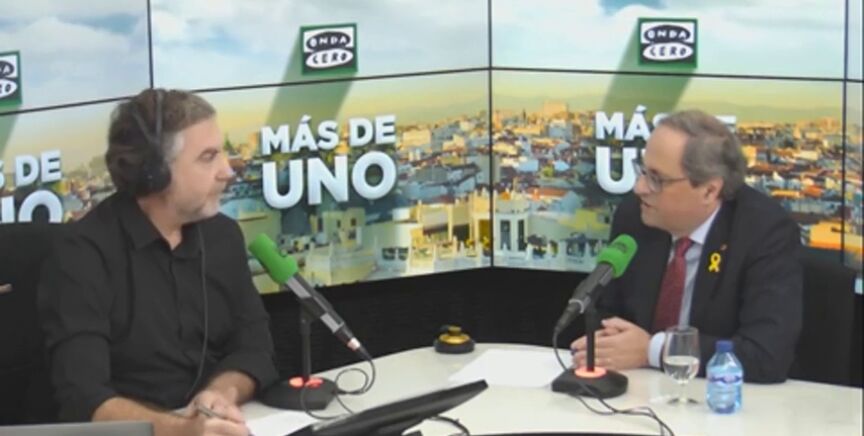 En una entrevista en Onda Cero, el presidente de la Generalitat, Quim Torra, ha afirmado que "si en la constitución no cabe el derecho de autodeterminación de Cataluña, quizá el problema es de la Constitución".