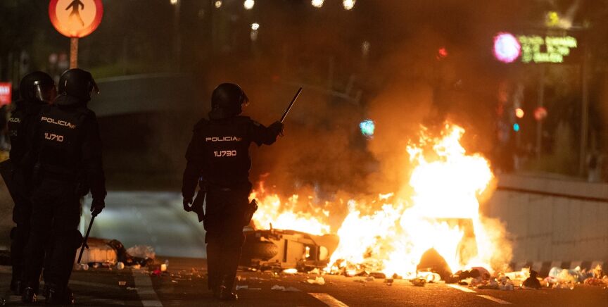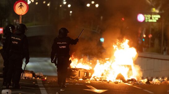 El Ministerio de Interior ha confirmado que en esta segunda noche de altercados violentos sí llegaron a hacer uso de pelotas de goma para disuadir a los manifestantes que lanzaban adoquines, botellas de cristal y contenedores.