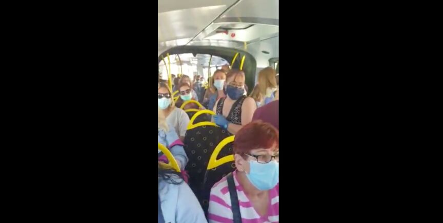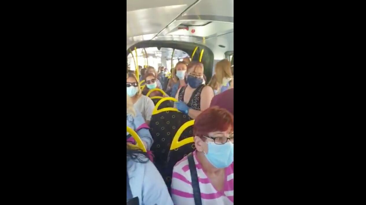 Los propios pasajeros denunciaron las condiciones en las que tuvieron que desplazarse en el primer día de la región en la fase 1, y grabaron las imágenes en las que puede comprobarse cómo no se cumplió con la norma de dejar un asiento libre entre personas y en las paradas se producía contacto físico.