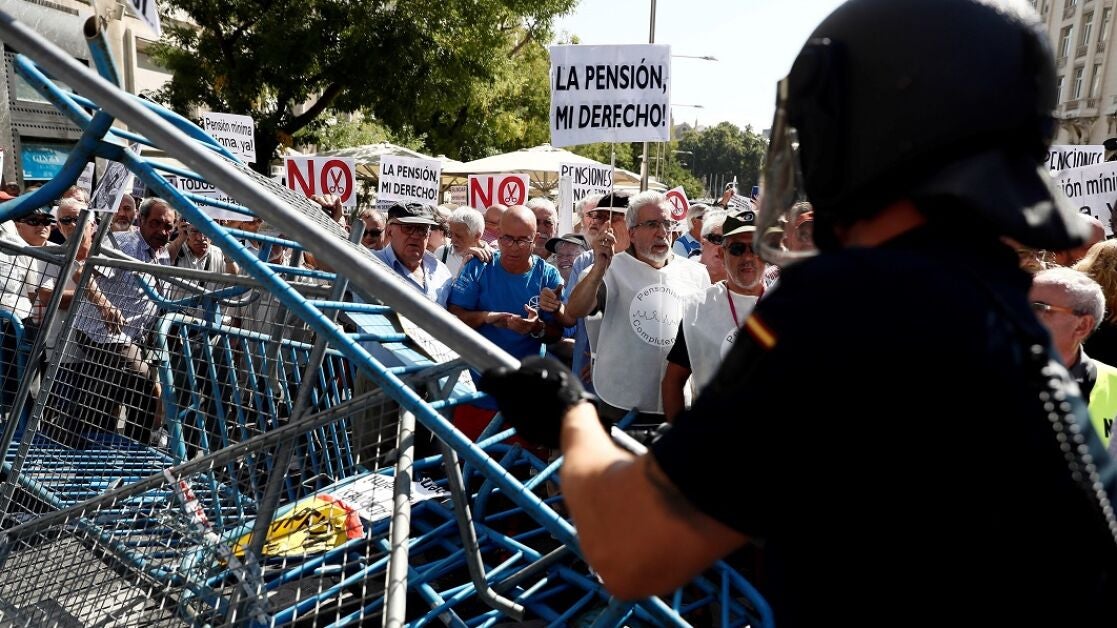 Tensión a las puertas del Congreso entre pensionistas y antidisturbios: "¡Somos pensionistas, no terroristas!"