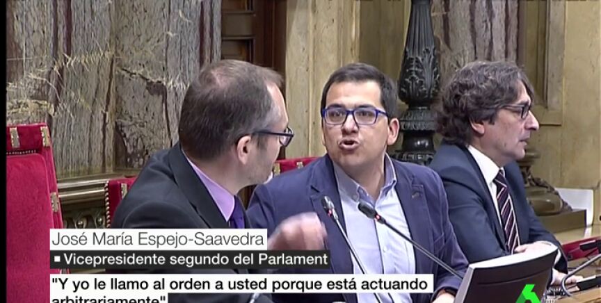 Espejo-Saavedra contestó llamándolo también al orden al considerar que estaba actuando de manera parcial: "Le llamo al orden a usted. Está actuando arbitrariamente". Tras la discusión, varios diputados pidieron la palabra, que Costa se negó a dar hasta que terminara el turno de Arrimadas.
