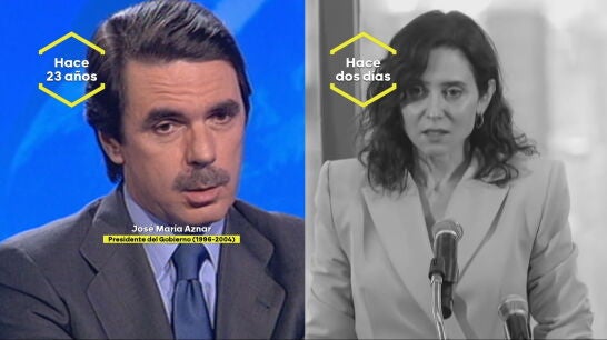 A todos les duele y, aún así, se calcan palabra por palabra dos décadas después. "Que puede haber personas que digan, 'lo mejor es no hacer nada' o 'lo mejor es mirar hacia otro lado'", declaró entonces Aznar. Y, ahora, Ayuso ha señalado que "si nadie hace nada, ¿de verdad creen que la paz se va a asegurar en el mundo?".