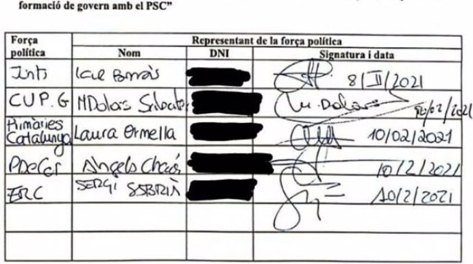 Todos los partidos independentistas se comprometen por escrito a dejar fuera de cualquier coalición al PSC