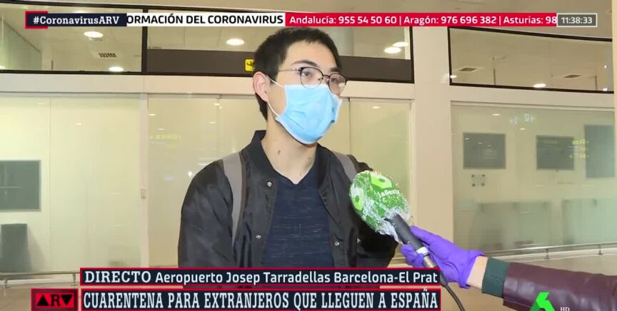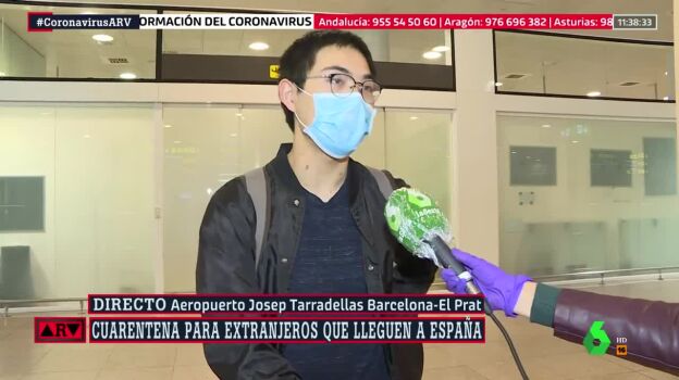 Martina, de 18 años, estudiante de diseño de moda en Londres, vuelve a su caso en El Masnou, provincia de Barcelona. Hará la cuarentena, dice, en casa de sus padres, en su habitación. Cuenta que al bajar del avión tuvieron que rellenar un documento y antes de salir les han tomado la temperatura.