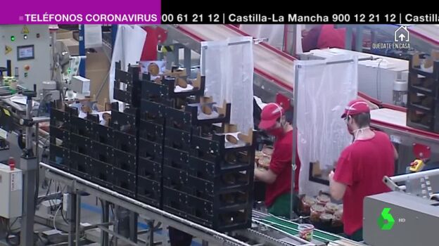 El control de la temperatura de los empleados a la entrada del trabajo es una de las medidas que se adoptan en la cooperativa de tomates 'Granada la palma'. Además, la empresa equipa a los trabajadores con guantes, mascarillas, gel, gafas y una mampara protectora. Se busca la seguridad del trabajador y también del cliente.