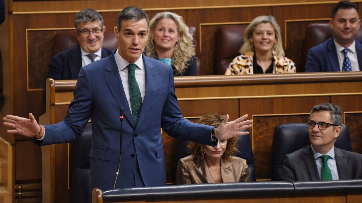 Esta es la segunda semana en la que el presidente del Gobierno, Pedro Sánchez, permanece en el hemiciclo del Congreso de los Diputados tras responder las preguntas de la oposición sobre su gestión en el Ejecutivo. Lo hace junto a su vicepresidenta primera y ministra de Hacienda, tras la que no duda en asentir mediante muecas y comentarios inaudibles.