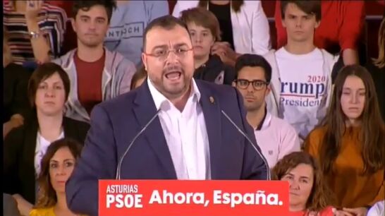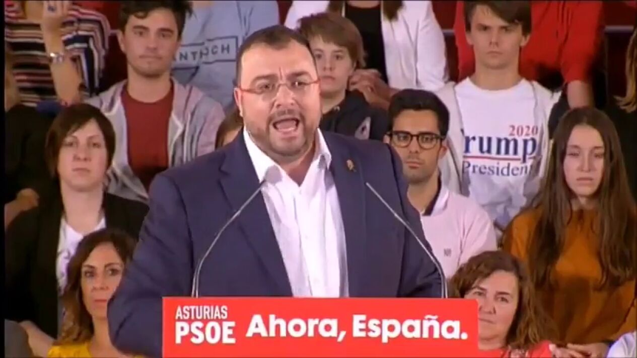 Este vídeo de un joven mostrando una camiseta pro Trump en pleno mitin del PSOE en Oviedo se está volviendo completamente viral en redes sociales.