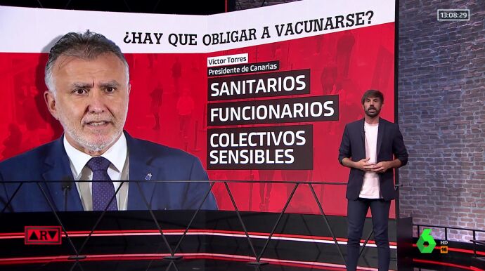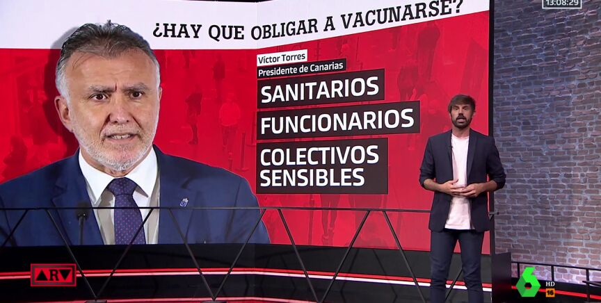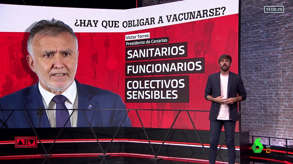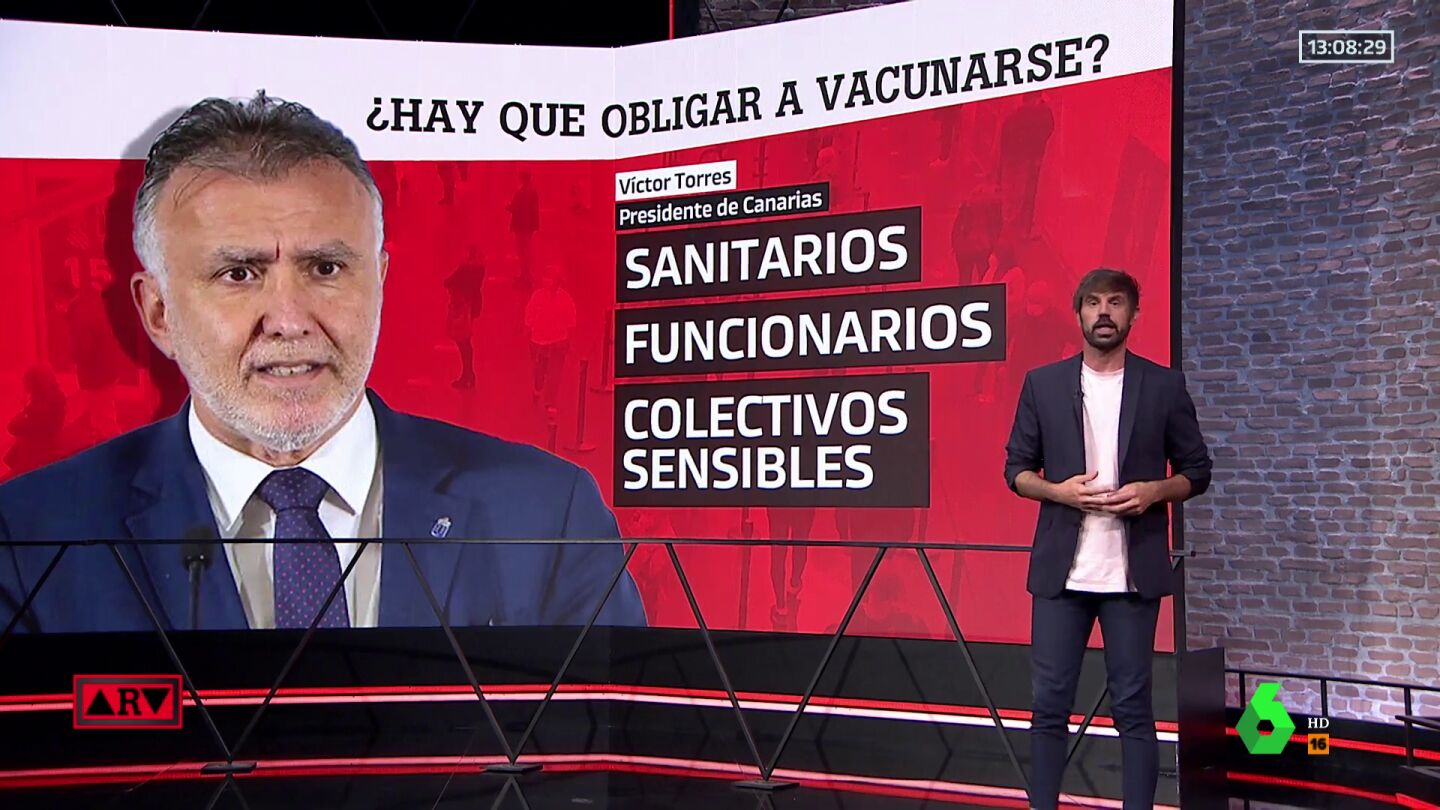 El pasado 27 de julio, el Gobierno de Canarias aseguró que estudia obligar a vacunarse a los empleados públicos de servicios esenciales que rechacen la vacuna contra el coronavirus. "No puede obligarse a la ciudadanía a la vacunación, es un derecho que no es obligatorio", recordaba el presidente Ángel Víctor Torres, que aun así hacía un matiz: "Es distinto en el caso de los funcionarios de distintos cuerpos".