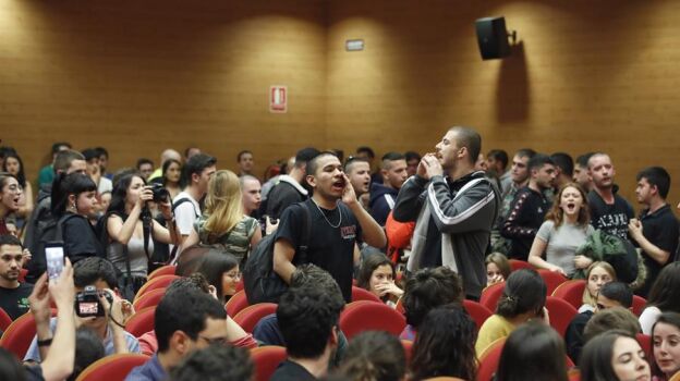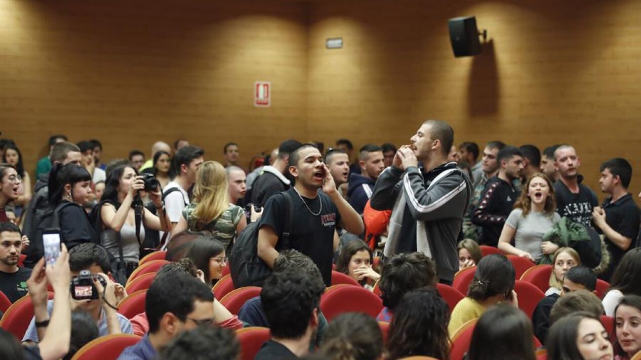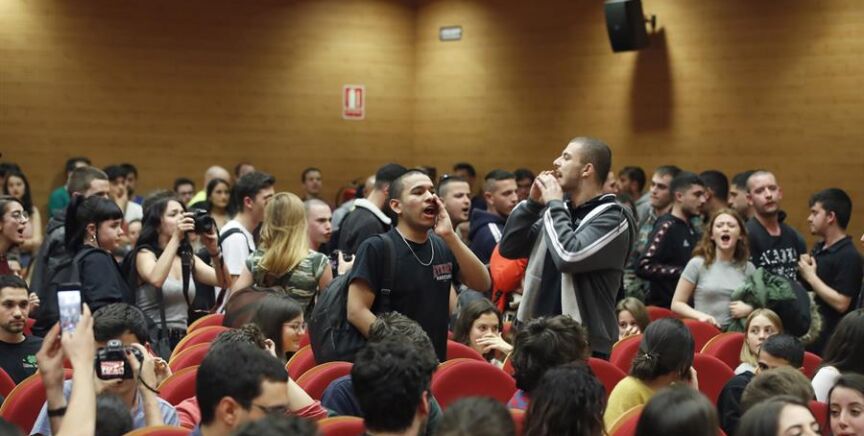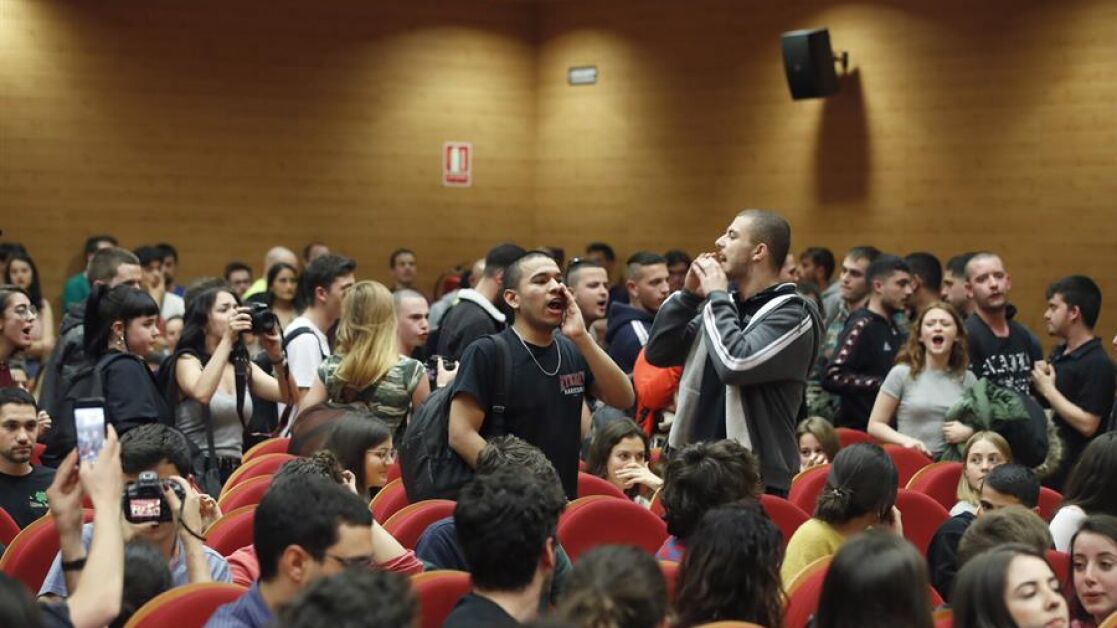 Pablo Iglesias sufrió los gritos de un grupo de alumnos de la Facultad de Ciencias Políticas de la Complutense en un acto contra el fascismo. El vicepresidente intentó dialogar con los jóvenes, que decidieron abandonar el acto.