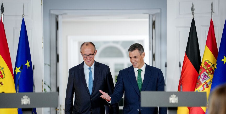 Merz lo ha explicado en la rueda de prensa que ha ofrecido junto al presidente del Gobierno, Pedro Sánchez, tras su encuentro este jueves en el Palacio de La Moncloa.