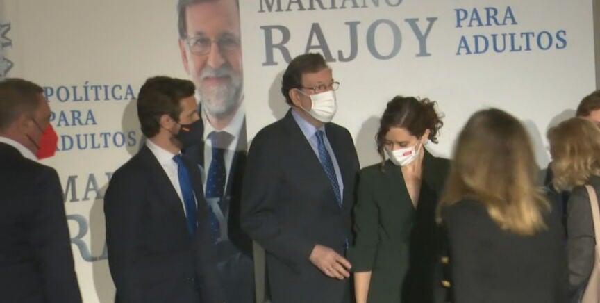 VÍDEO | Los intentos (sin éxito) de Rajoy para que Díaz Ayuso y Casado posen juntos
