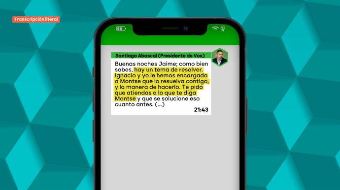 Durante las primeras semanas del curso político, el máximo responsable del partido de extrema derecha ordenó a su secretaria general adjunta, Montserrat Lluís, que tratase de atajar el conflicto con Revuelta forzando a sus dirigentes a disolver la asociación para volver a la normalidad. Un intento que queda probado en los WhatsApps que el propio Abascal intercambió con el presidente de Revuelta, Jaime Hernández.
