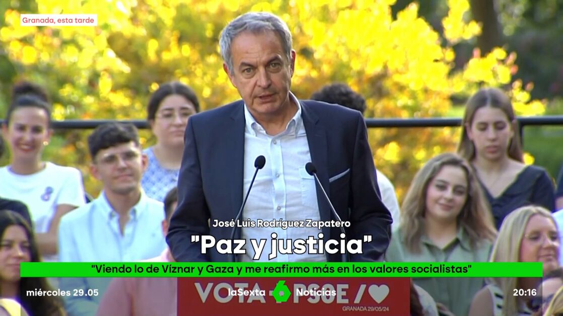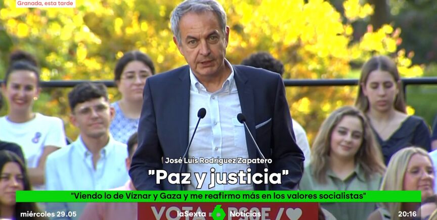 Además, Zapatero ha afirmado que cada día son más importantes las ideas de la paz y las ideas socialista viendo lo que sufre el pueblo palestino: "Viendo lo que ocurre en Gaza, viendo los niños y las niñas mueren inocentemente, por la barbarie, por la fuerza me reafirmo cada día más en las ideas socialistas, en las ideas de la paz, en las ideas de la justicia".