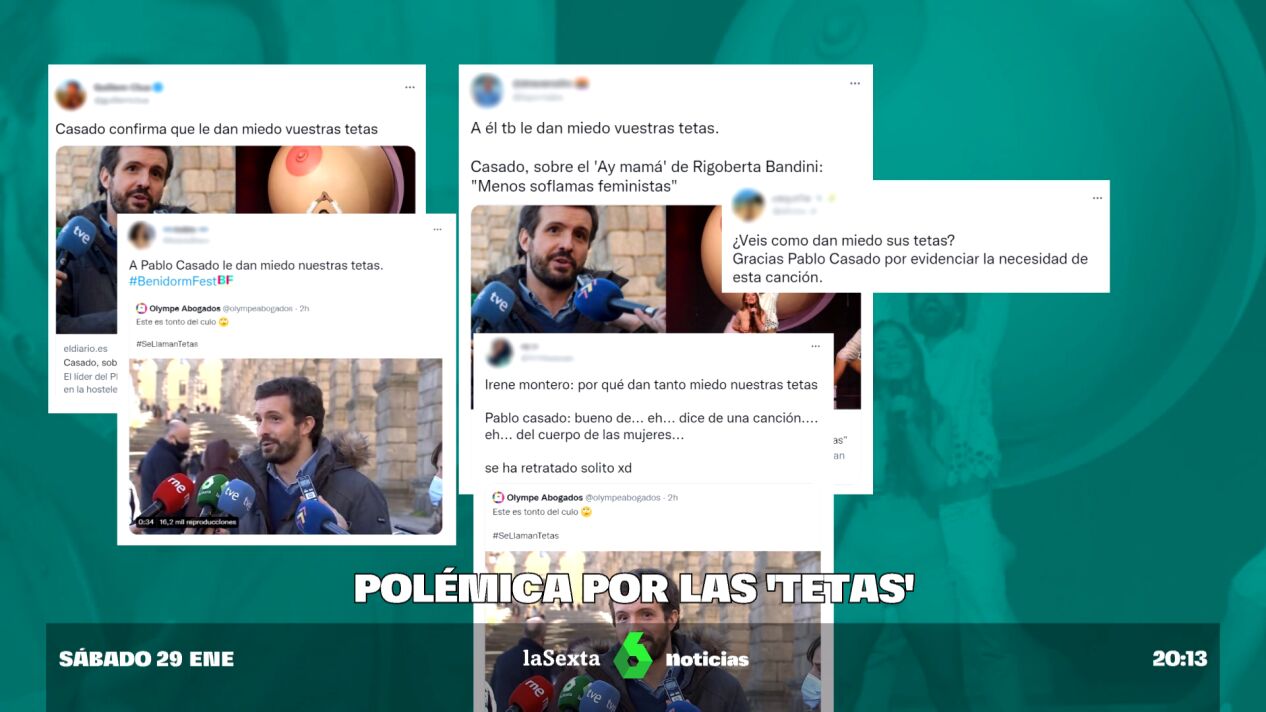 Unas palabras del líder 'popular' a las que no han tardado en reaccionar los usuarios de las redes sociales, que aseguran que Casado no se ha atrevido a mencionar la palabra tetas.