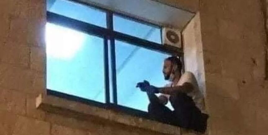 La imagen del joven palestino que se sentó una noche en la ventana de la UCI donde su madre acabó falleciendo por COVID-19 conmociona en las redes.