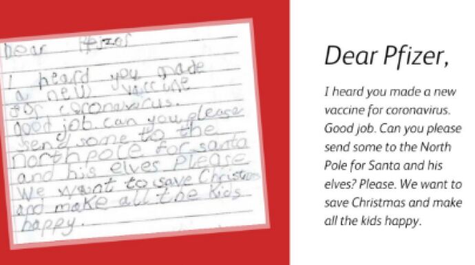La respuesta de Pfizer a un niño que pide mandar una vacuna a Papá Noel y a sus elfos