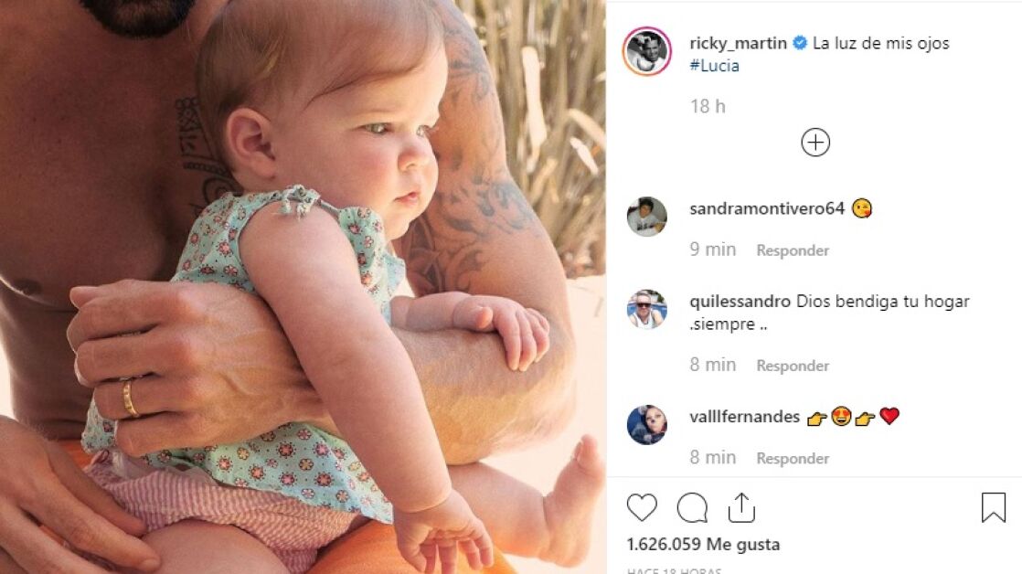 "La luz de mis ojos #Lucia". Así ha presentado el cantante Ricky Martin a su hija a través de su cuenta de Instagram. El artista ha esperado más de siete meses para mostrar al mundo a su pequeña Lucía con una imagen en la que la niña aparece en brazos de su padre.