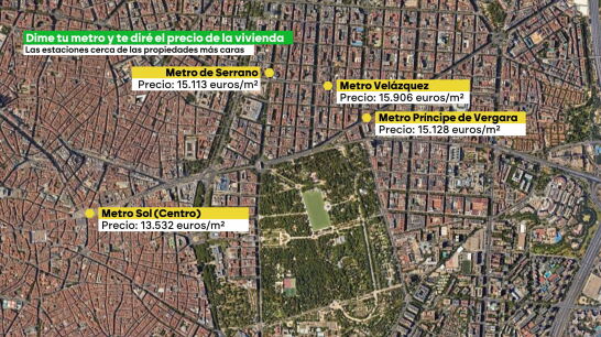 Y de la costa y el encanto de Barcelona, viajamos a Madrid. Las estaciones de la Milla de Oro están las primeras en el ranking en lo que a precios se refiere: casi 16.000 euros cuesta el metro cuadrado cerca de Velázquez, la más cara. Sin embargo, el plano del metro es amplio, y en las estaciones del centro de Madrid, como Sol, el metro cuadrado supera los 13.500 euros.