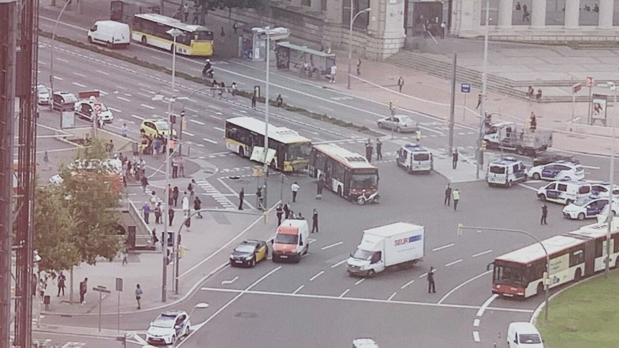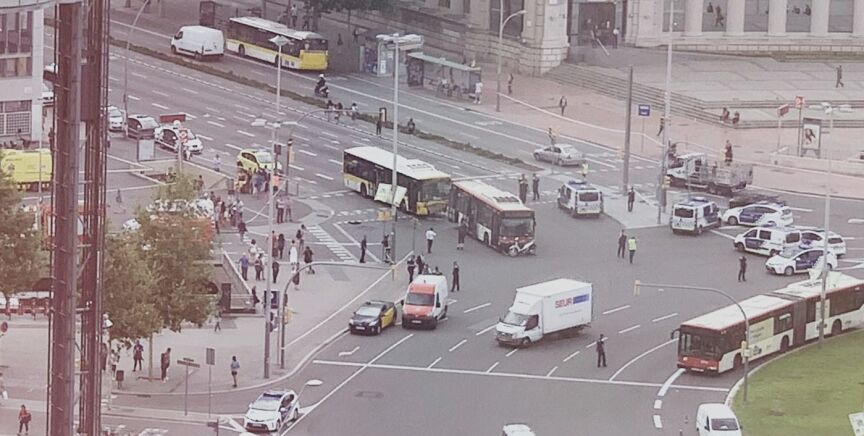 Accidente en Barcelona: al menos 20 heridos al chocar dos autobuses y una moto en Plaza de España