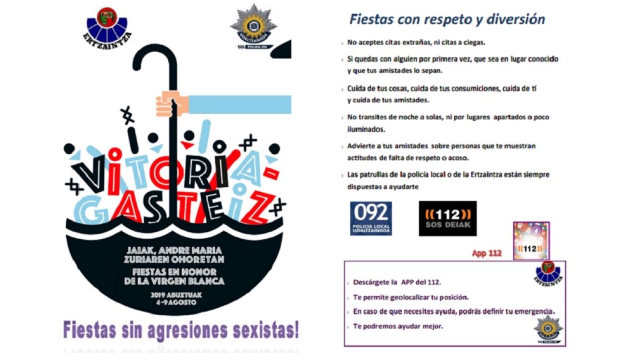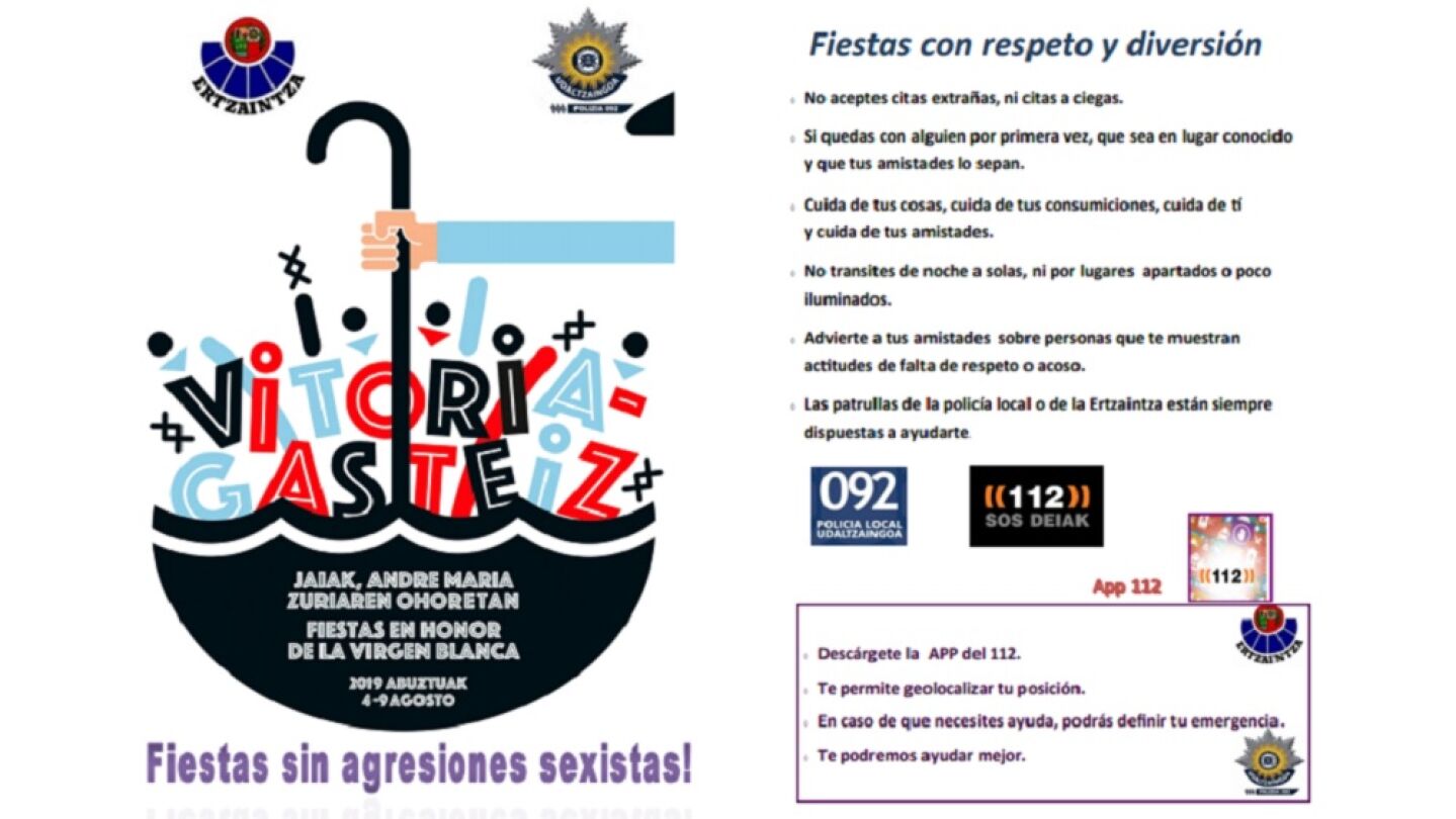 Tras el arresto en Bilbao de seis hombres por su implicación en una violación grupal a una joven, la Ertzaintza y la Policía Local difunden folletos para evitar agresiones en las fiestas de Vitoria.