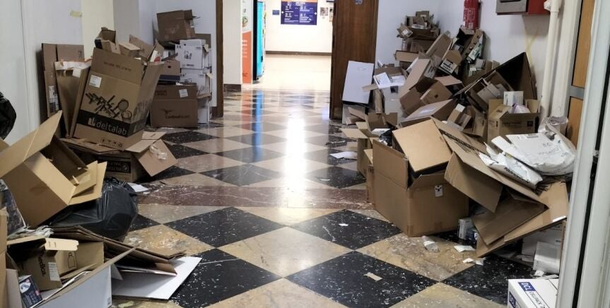 Cajas de cartón, basura, mascarillas, polvo...llevan semanas inundando las zonas comunes de los hospitales y ambulatorios del País Vasco, convirtiendo muchos de ellos en auténticos vertederos. Esta situación ha llevado al Gobierno Vasco a actuar de urgencia por segunda vez en el Hospital de Donostia. Esta mañana de Jueves Santo ha empezado una limpieza en este centro hospitalario ante el "elevado riesgo de incendio" por la acumulación de estos residuos. Un informe elaborado por los técnicos de salud pública constata que "la situación de insalubridad, suciedad y desorden se ha acrecentado" en los últimos días.
