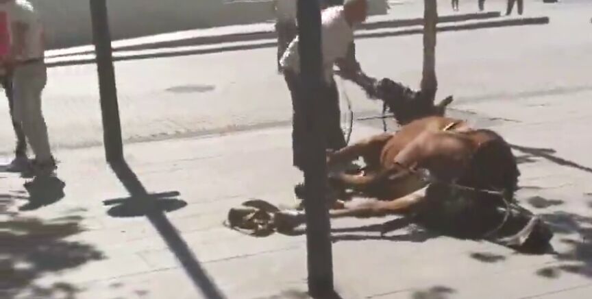 "El animal cae al suelo exhausto y mientras tanto los cocheros en lugar de preocuparse por él comienzan a increpar a los presentes. ¿Cuánto tiempo tenemos que esperar para regular esta actividad?", ha denunciado el partido animalista.