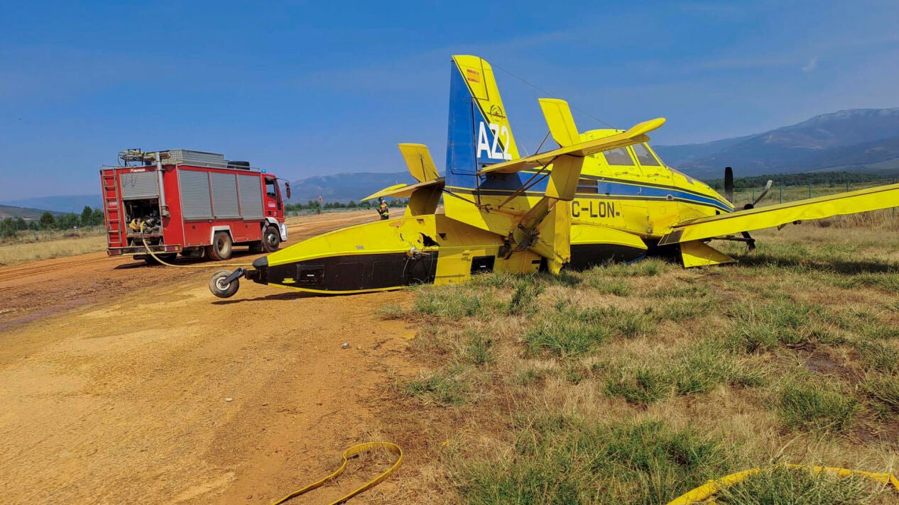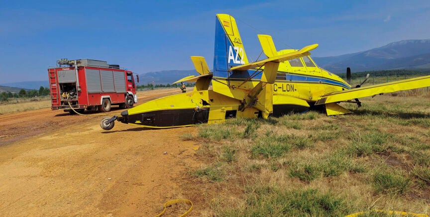 Aterrizaje de emergencia de una aeronave que trabajaba en las labores de extinción de los incendios en el Lago de Sanabria