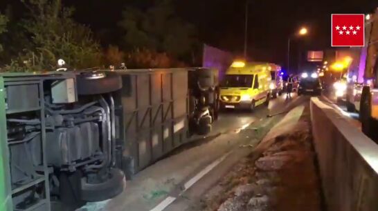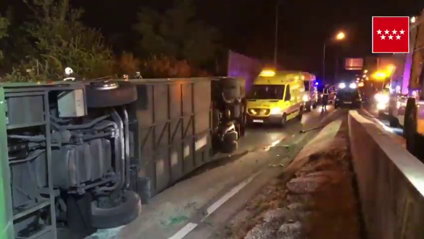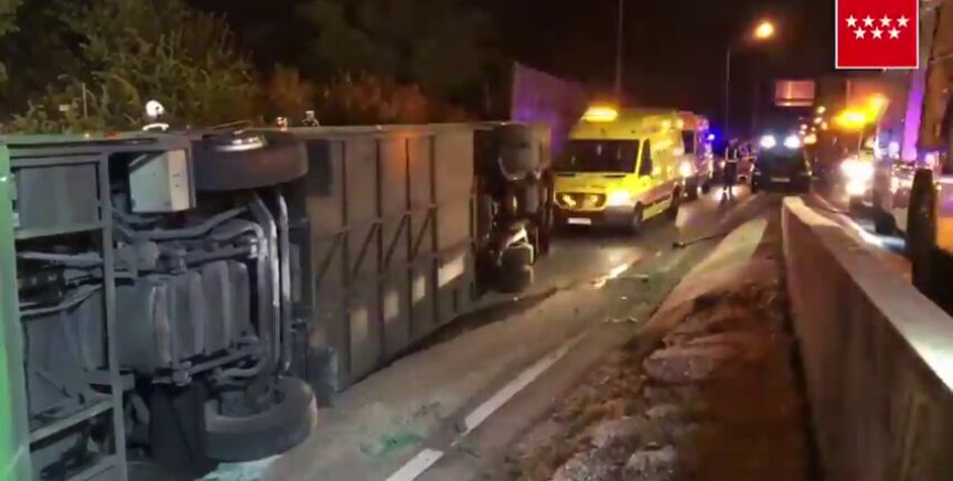 Al menos 20 heridos al volcar un autobús en la salida de A-1 en Madrid