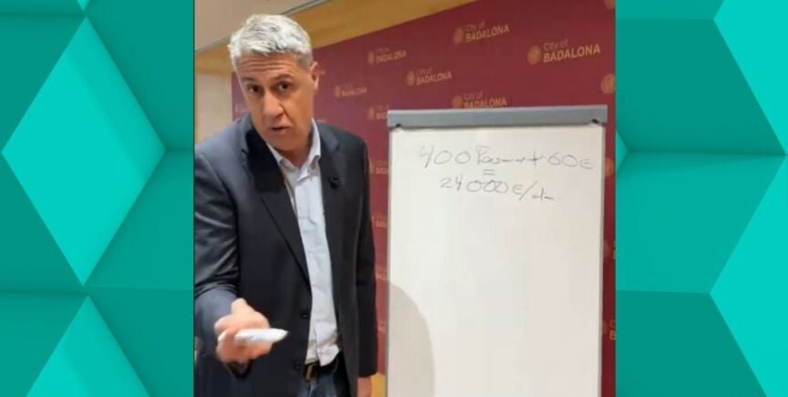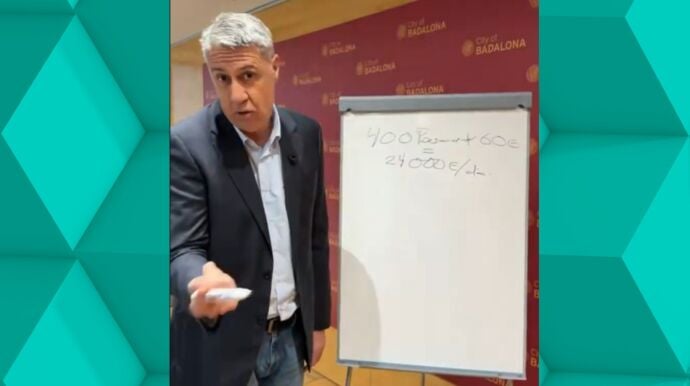 En ese momento ha sido cuando García Albiol ha tirado de la pizarra para hacer los cálculos de cuánto le costaría al Ayuntamiento de Badalona financiar esas pensiones. Según sus cálculos (60 euros por persona destinados a comida, cena y pensión), solamente los 400 migrantes desalojados, a los que se ha referido como "okupas", costarían 24.000 euros al día, 168.000 euros a la semana y 672.000 euros al mes en su atención.