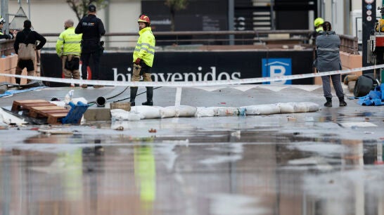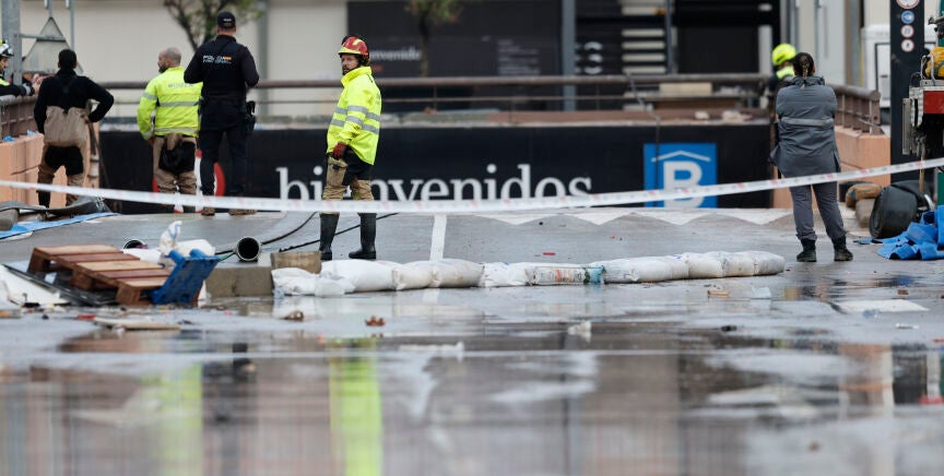 El personal especializado en la búsqueda de víctimas se está retirando al final de la mañana de este martes del aparcamiento, donde continúan la labores de achique por parte de empresas privadas porque todavía queda algo de agua, y permanece en la zona un dispositivo de la Policía Nacional para prevenir robos y pillajes.