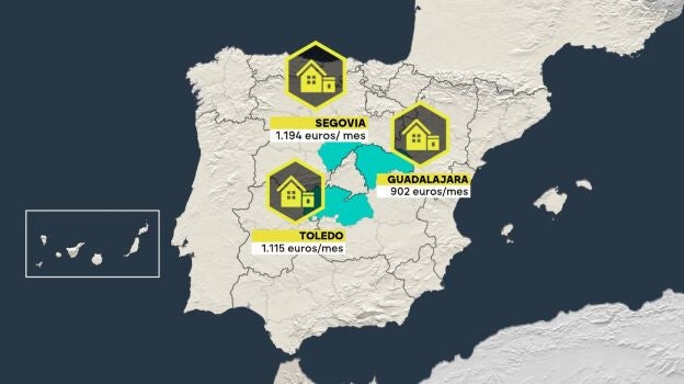 El alquiler se dispara hasta los 1.200 euros en Guadalajara, Toledo y Segovia por su cercanía con Madrid