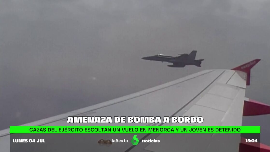 Amenaza de bomba en un avión a Menorca: detenido un joven por una alerta falsa que obligó a escoltar el vuelo