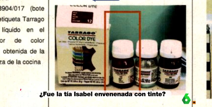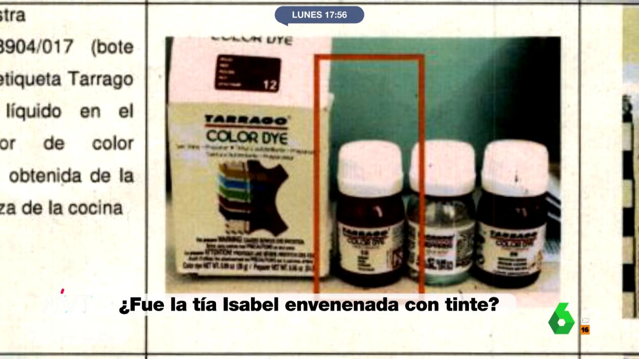 El Grupo de Homicidios de la Guardia Civil cree que Luis Lorenzo y Arancha Palomino envenenaron a Isabel Suárez con tinte para zapatos. Así se desprende de un informe pericial al que ha tenido acceso laSexta y en el que la Benemérita destaca que se ha detectado manganeso en tres de los botes de este producto intervenidos en el registro del domicilio en el que murió la tía Isabel.