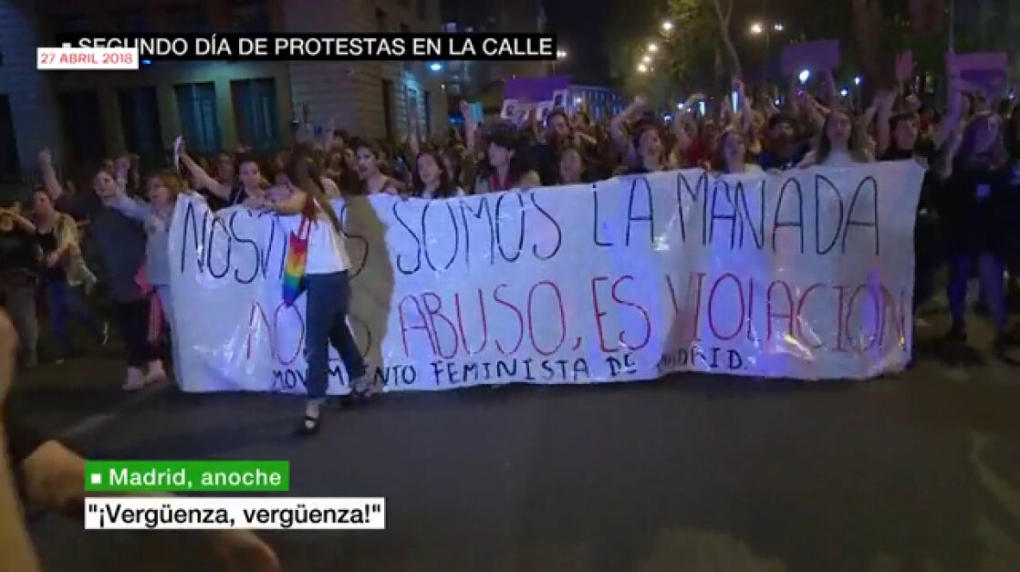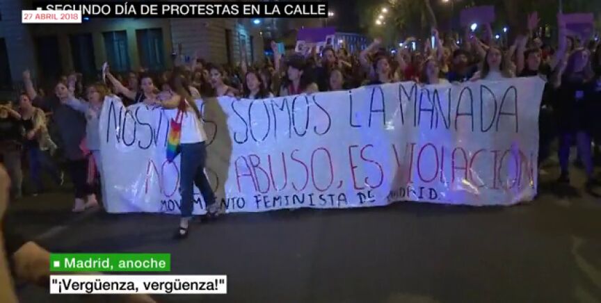 La reacción popular de indignación contra la sentencia fue instantánea y poderosa. Organizaciones y colectivos feministas presentes en el exterior de la Audiencia Provincial en Pamplona manifestaron su descontento, llegando a romper el cordón policial establecido por la policía foral. Cientos de manifestaciones y concentraciones se sucedieron el 26 de abril y los siguientes días, en toda España, así como en otros países de Europa, clamando contra unas penas que consideraban cortas e injustas. Los programas de laSexta efectuaron un intenso seguimiento de las reacciones a la sentencia, con un gran despliegue de periodistas presentes en Pamplona y en el resto de los puntos de España en los que se expresaba la indignación.