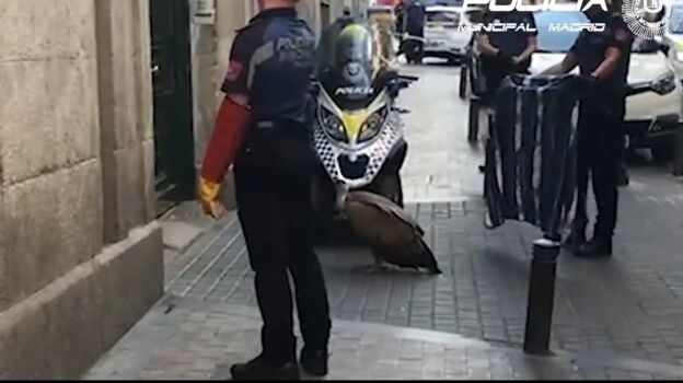 Así ha sido el rescate de un buitre desorientado y agotado en pleno centro de Madrid