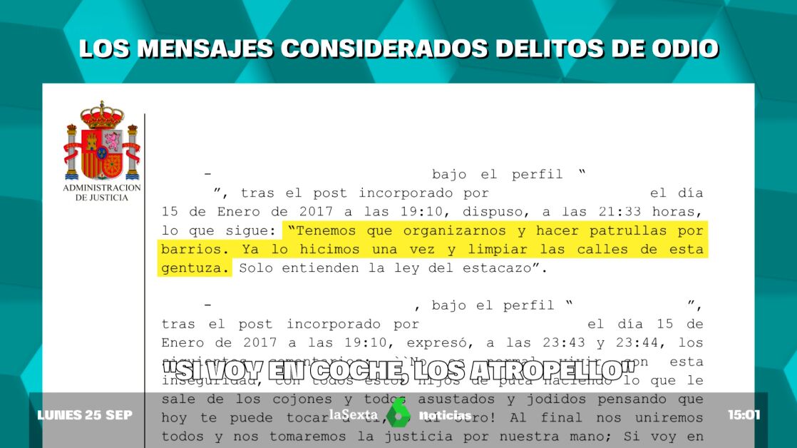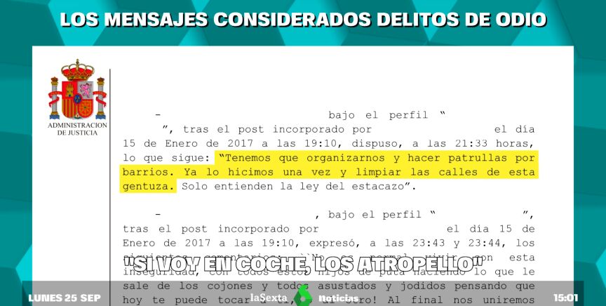 Así son los mensajes de los condenados por delito de odio: "Más mano dura y a su puto país"