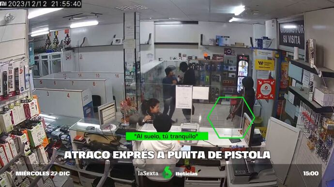 Mientras uno atendía, el otro terminaba de recoger la tienda. De repente, un individuo encapuchado irrumpe en el local. "Alto, alto, alto, alto", grita hasta cinco veces. Empuña un cuchillo. Amenaza a la clienta y a los dos trabajadores. Les pide que se tiren al suelo. Tras él, dos personas más entran en el local. "Que nadie salga", insiste. Son atracadores.