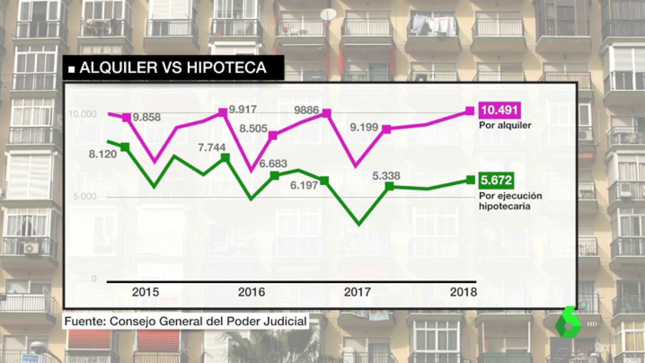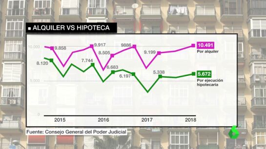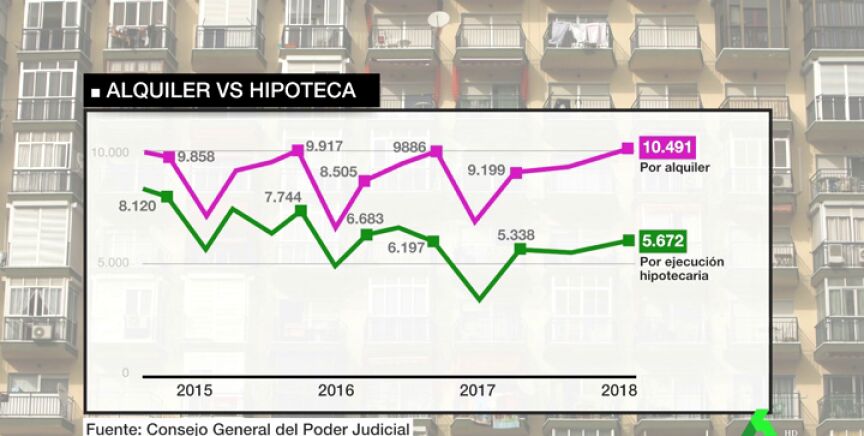 Los desahucios por alquiler ya casi duplican a los desahucios por impago de hipotecas, según el último informe del Consejo General del Poder Judicial. El aumento del precio del alquiler es una de las claves.