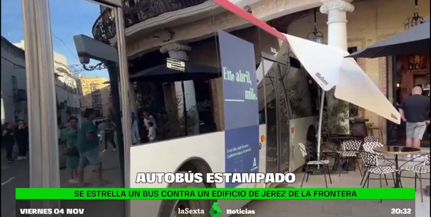 Un autobús urbano se ha estrellado en la tarde del viernes contra la fachada del céntrico edificio del Gallo Azul, en Jerez de la Frontera, Cádiz. El accidente ha ocurrido junto a las mesas del un bar.