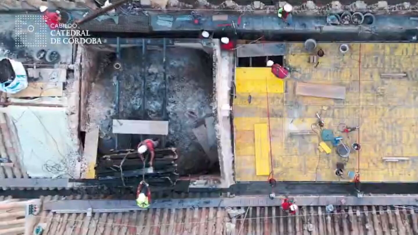 Los detalles El Cabildo de la Mezquita ha anunciado que las labores progresan "a buen ritmo" y que las máquinas trabajan para recuperar la normalidad lo antes posible. Cuando termine esta primera fase, comenzará la restauración.
