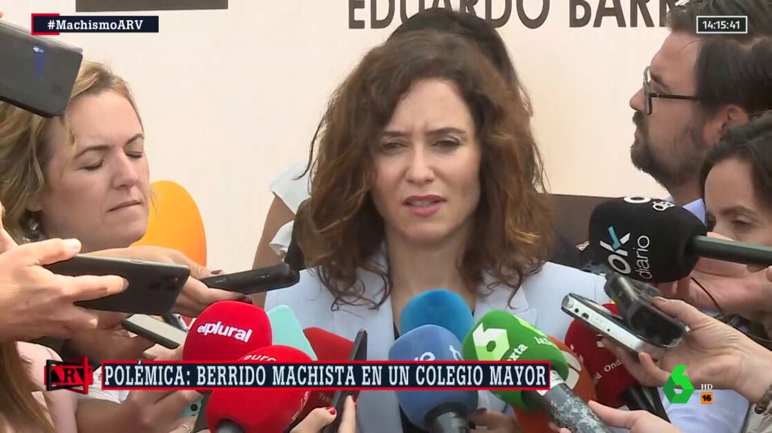 La presidenta de la Comunidad de Madrid, Isabel Díaz Ayuso, ha rehusado condenar los gritos machistas en el colegio mayor de Madrid, Elías Ahuja, porque considera que "se está desviando la atención" de otros asuntos de interés, y porque "le sorprende" que "la Fiscalía ahora sí esté para investigar" estos asuntos de la Universidad.