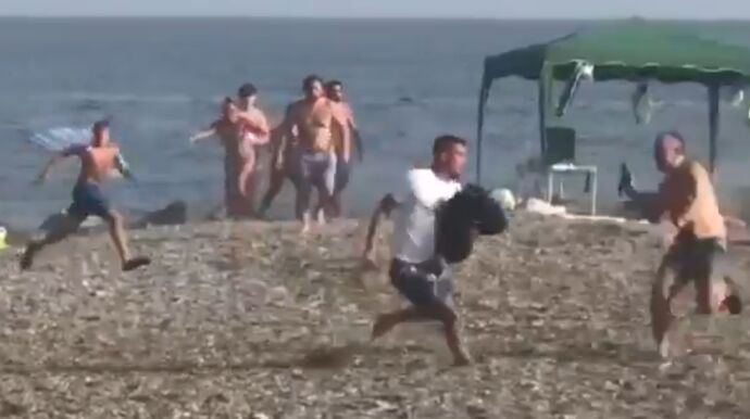 Una persona grabó el momento en el que un narco, que previamente golpeó con su embarcación a una persona, huía con la droga y era interceptado por varios bañistas.