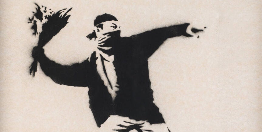 Ni le ponemos cara ni tampoco sabemos su nombre. Sin embargo, lo que sí que sabemos sobre Bansky es que no revelar su identidad le está empezando a salir más caro de lo que se pensaba: el grafitero ha perdido sus derechos de autor de su obra más conocida, el 'Lanzador de flores'.